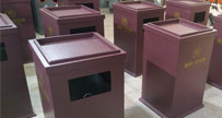 長沙垃圾桶廠家采用冷軋鋼板材料經過剪板、折彎、沖孔、壓蝠焊、打磨、酸洗、清水處理、四合一防銹處理、擦、靜電粉末噴塑、裝配、絲印客戶LOGO等生產工藝,桶體...