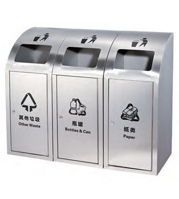 深圳新標準城中村街道社區(qū)不銹鋼五分類垃圾桶由有害垃圾、玻璃、金塑紙(為金屬、塑料、紙張的簡稱)、廚余垃圾、其他垃圾這5分類不銹鋼垃圾桶組合而成。其中金塑紙、其他垃圾日常產(chǎn)生量較大,所以分類收集容器也