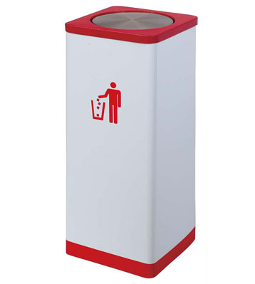 鋼制垃圾桶 采用優質冷軋鋼材料經剪鈑下料、折彎、沖壓、焊接、打磨、等工藝:表面經除油、防銹、酸洗磷化加工而成