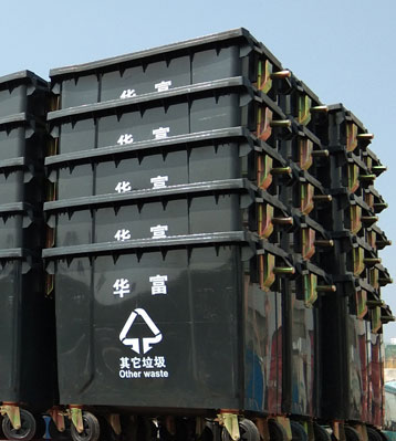 蘇州市政為加強市容環衛責任制落實,督促店家嚴格落實市容環衛責任制,履行市容環衛責任。環衛設備上選用欣方圳垃圾桶廠家660L大型塑料環衛垃圾桶,桶身掛車部分特別加厚可直接上環衛掛車,降低環衛工人勞動強度