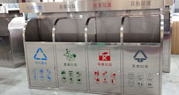 小區垃圾分類站點四類垃圾分類垃圾桶,不銹鋼無疑是較為理想的材質。它戶外防銹蝕效果好,表面金屬光澤高檔美觀,污漬也易清理。不銹鋼分類桶產品款式造型易定制,不受尺寸大小限制,滿足個性化需求,擺放于惠