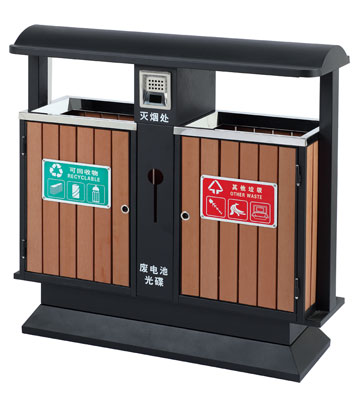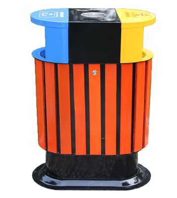 鋼木垃圾桶 鋼木選用防腐木、進口山樟木或塑木,經除蟲、防腐,烘干處理后加工成型。桶身框架冷軋鋼經酸洗磷化制作