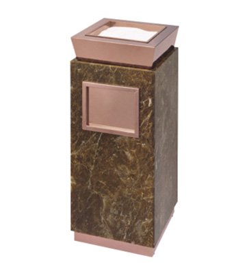 • 產(chǎn)品材質(zhì):采用天然的大理石與優(yōu)質(zhì)冷軋鋼板或不銹鋼鋼板制作而成,四面大理石用鋼板螺絲固定于桶體,有內(nèi)桶,方便提倒垃圾,桶頭煙灰盅可放白石子可清洗,鋼板經(jīng)折彎沖壓一次性成型。產(chǎn)品一律用室外粉靜電噴塑,經(jīng)過180°的高溫,延長垃圾桶使用壽命,顏色持久不變亮麗如新。