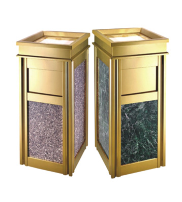 • 產(chǎn)品材質(zhì):采用天然的大理石與優(yōu)質(zhì)冷軋鋼板或不銹鋼鋼板制作而成,四面大理石用鋼板螺絲固定于桶體,有內(nèi)桶,方便提倒垃圾,桶頭煙灰盅可放白石子可清洗,鋼板經(jīng)折彎沖壓一次性成型。產(chǎn)品一律用室外粉靜電噴塑,經(jīng)過180°的高溫,延長垃圾桶使用壽命,顏色持久不變亮麗如新。