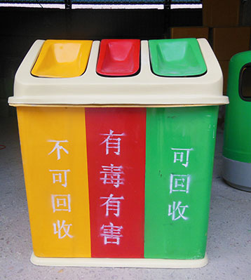 • 產品名稱:玻璃鋼三分類垃圾桶