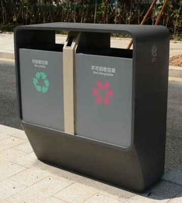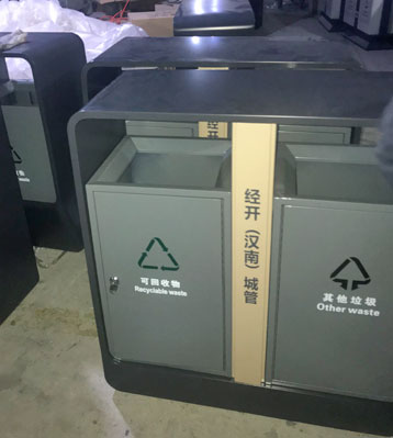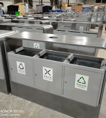 欣方圳戶外鋼制分類垃圾箱工廠批量生產圖