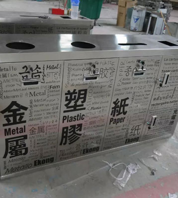• 使用范圍:欣方圳不銹鋼五分類環?;厥障浔砻婀饣?、亮麗,是電梯口、寫字樓、學校、物業、賓館、酒店、機場、汽車站等擺放的首選。