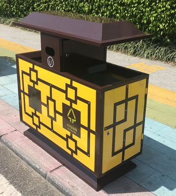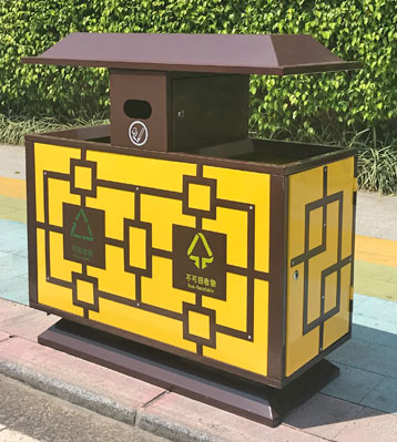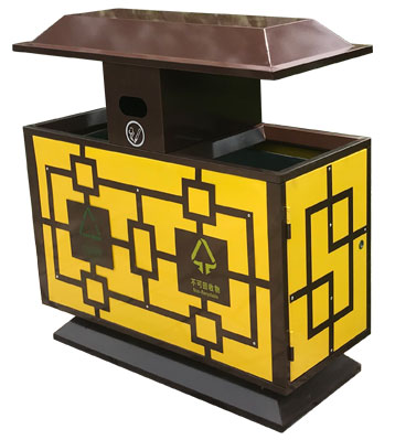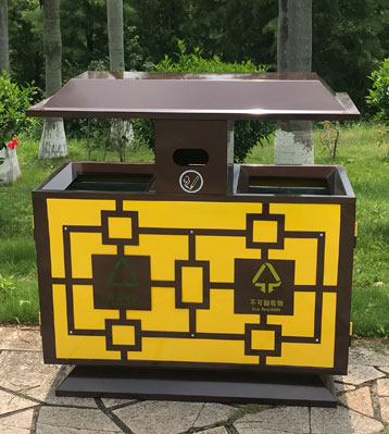 欣方圳戶外仿古典風分類垃圾箱細節展示
