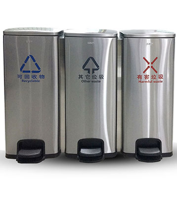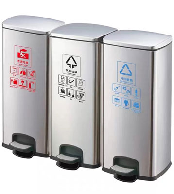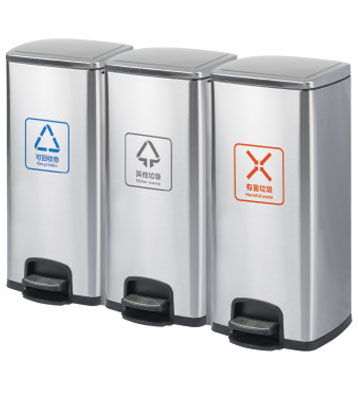M83D室內(nèi)不銹鋼四分類腳踏桶