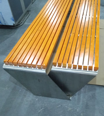 欣方圳不銹鋼特色雙排戶外休閑椅凳面防腐木材質制作流程示意圖,工藝領先,品質卓越,真正經久耐用。