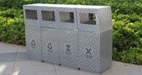 深圳景區不銹鋼鏤空垃圾桶幾何藝術切面造型,采用5mm加厚316#不銹鋼材質而成,單個可組成室內外二、三、四分類垃圾桶。分類標識蝕刻后填漆,不...
